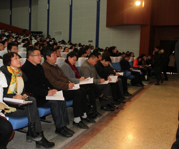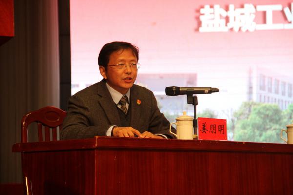 2017年12月13日下午,市委宣讲团成员、盐城工业职业技术学院党委书记姜朋明来我校进行党的十九大精神宣讲报告。宣讲报告会由校党委书记刘毓航主持。校长姜统华以及校领导班子成员、全体教职工及学生入党积极分子参加报告会。
