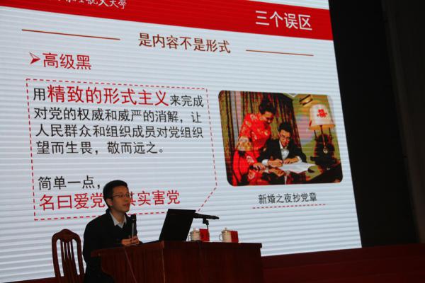 徐川结合自己的工作实际,从思政工作的“三个误区”“三个真心”“六扇门”妙趣横生地回顾了自己工作中与青年大学生交流过程的心路历程,以及自己如何结合青年的思想特点,生活中遇到的各式问题,借助微信网络平台,视频短片等多种新媒体手段春风化雨般地诠释党的基本理论,化解青年大学生思想中的纠结与块垒以及巧妙处理成长中的烦恼。