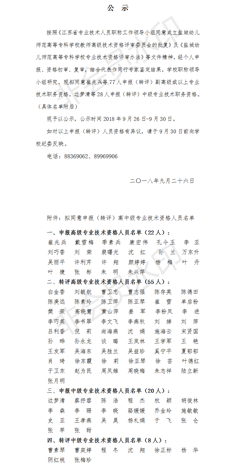 关于学科评议组拟同意推荐(晋升/转评)人员名单的公示